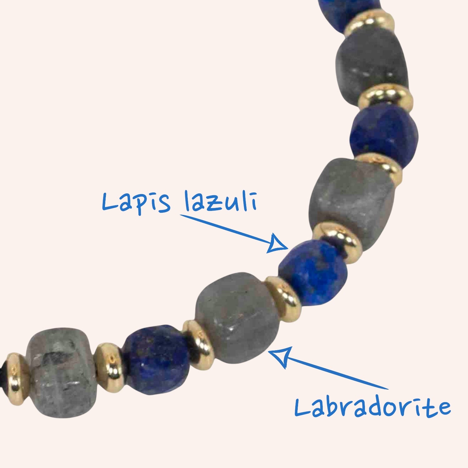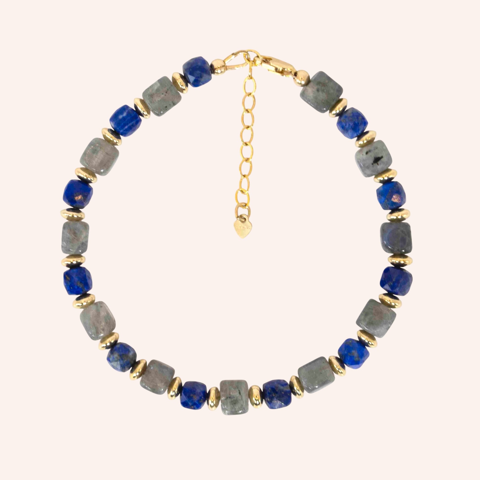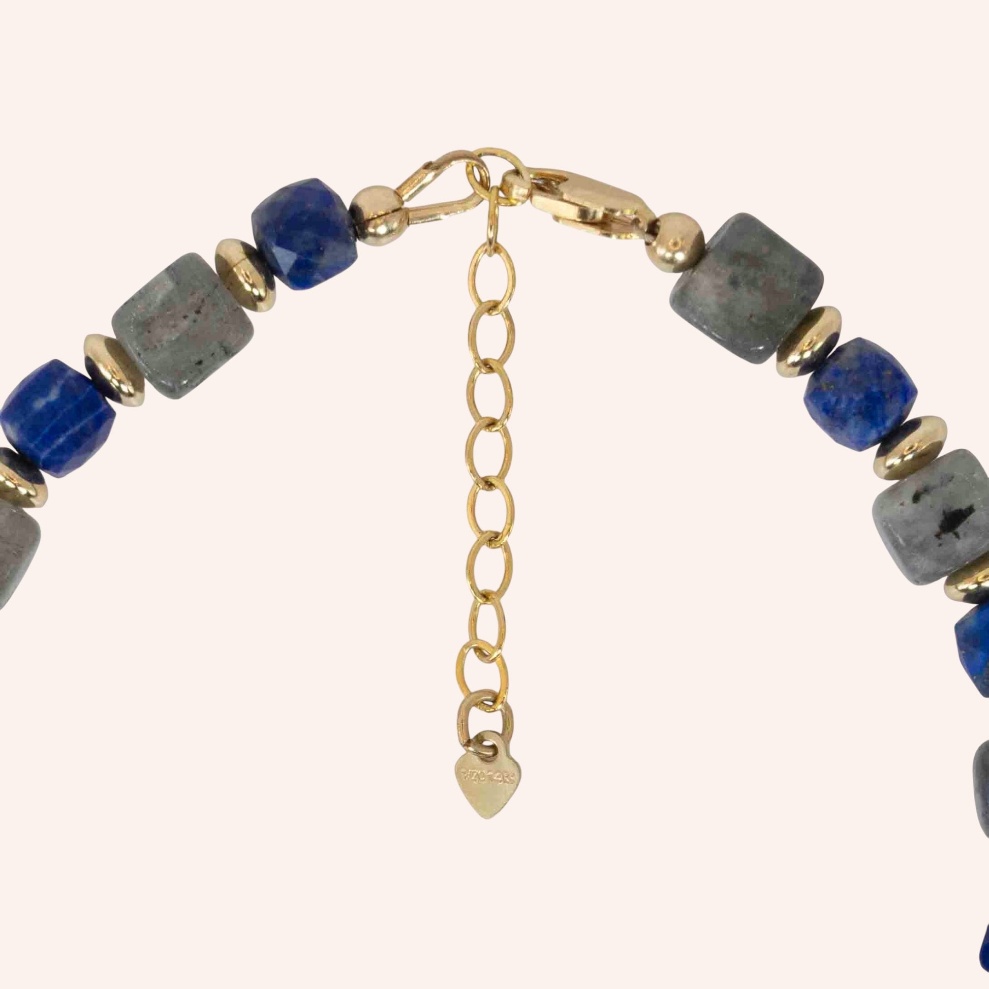 Step into elegance with the Midnight Majesty Bracelet, crafted with luminous Labradorite, deep celestial Lapis Lazuli, and accented in 14k gold filled for a touch of timeless luxury.
