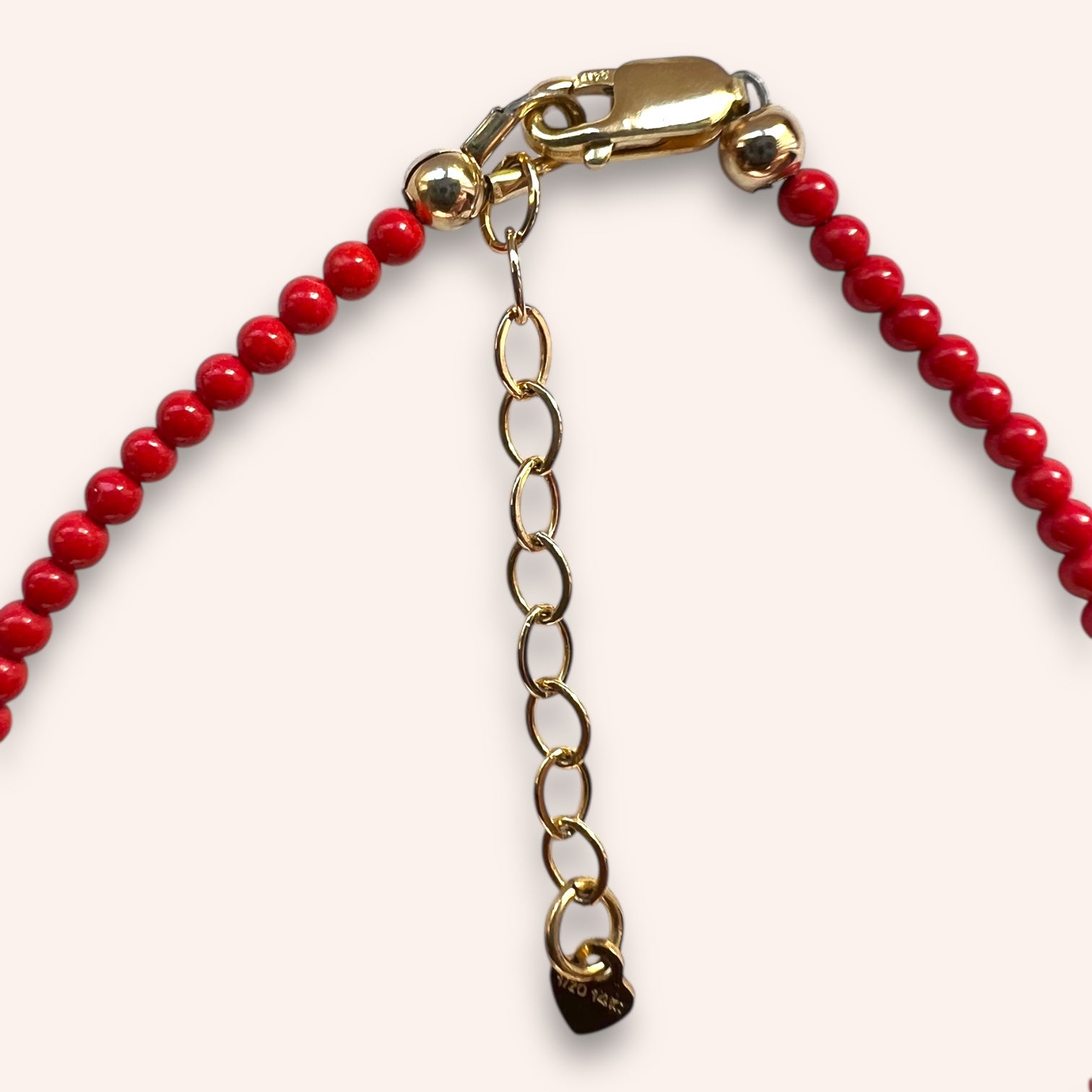 Bold, bright, and full of ocean energy, Crimson Tide features smooth 2mm red coral beads in a striking, vibrant shade. Their polished finish gives the bracelet a luminous glow, making it perfect for adding a touch of color to any look.