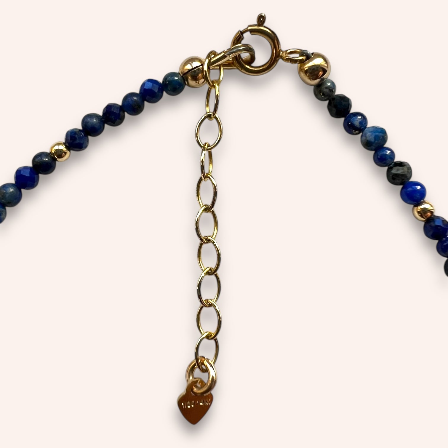 Deep, celestial, and full of timeless elegance, Midnight Lapis features tiny 2mm Lapis Lazuli beads in rich shades of royal and midnight blue. Each stone holds subtle natural variations — from deep indigo to flecks reminiscent of starlit skies — giving the bracelet a magical, refined glow.