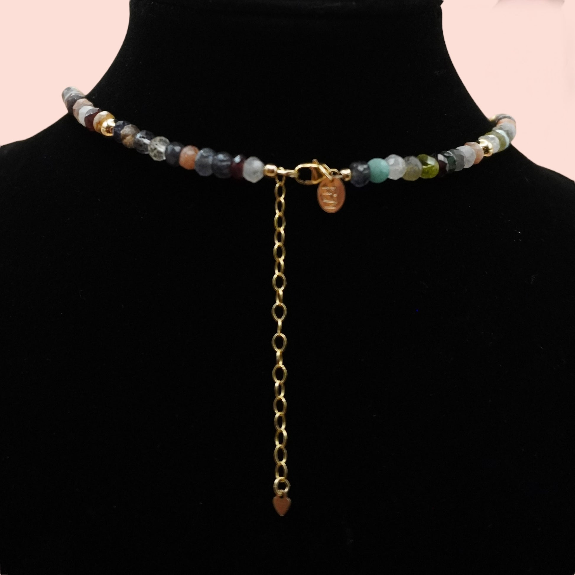 Celebrate the beauty of nature’s palette with our Spectrum of Serenity Necklace. This elegant design features a hand-selected mix of faceted gemstones—including hints of iolite, garnet, peridot, labradorite, sunstone, and more—accented with 14k gold-filled beads for a touch of warmth and luxury. Each stone brings its own energy: garnet for grounding, iolite for inner vision, peridot for renewal, sunstone for joy, and labradorite for protection. Together they form a harmonious spectrum of color and meaning, creating a necklace that’s as versatile and uplifting as it is beautiful. Perfect for everyday wear or as a meaningful gift, it’s a wearable reminder of balance and connection.