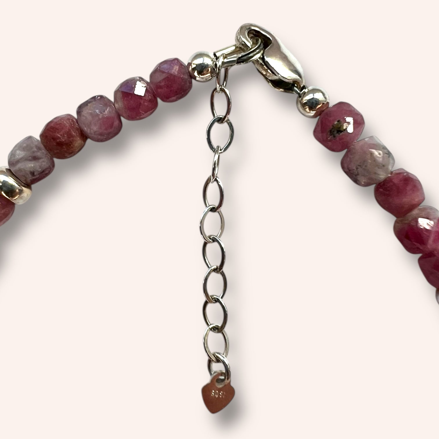 Accented with sleek sterling silver spacers, this bracelet balances soft color with cool, refined shine. Designed at 16.5 cm with a 3 cm sterling silver extension chain, it offers an adjustable, comfortable fit perfect for stacking or wearing as a subtle everyday statement.