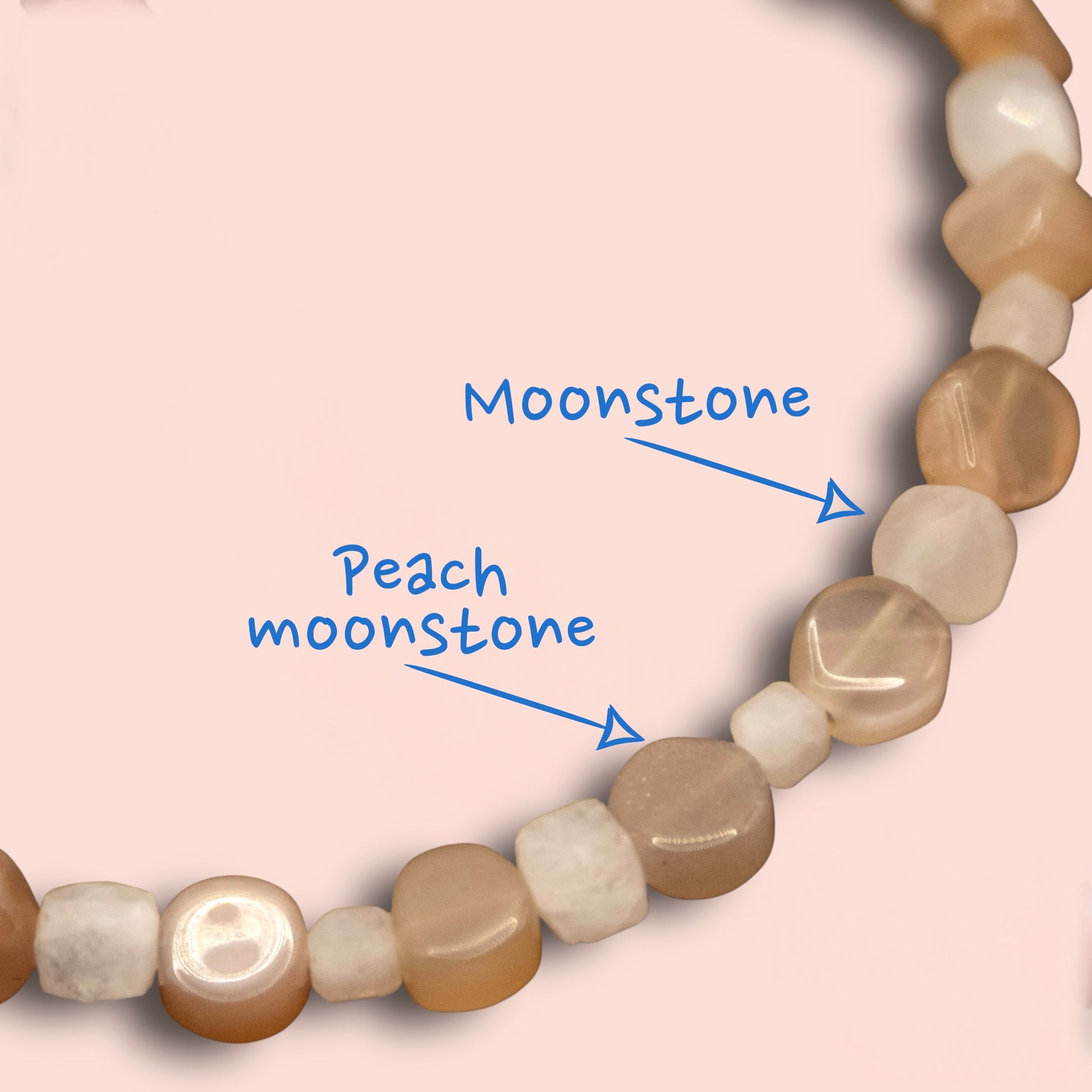 Embrace the calming energy of the moon with this elegant Lunar Glow bracelet, featuring a harmonious blend of classic Moonstone and warm Peach Moonstone. Known as a stone of intuition and inner balance, Moonstone enhances clarity and connects you to divine feminine energy. Peach Moonstone adds a gentle touch of compassion, encouraging emotional healing and self-love. Together, they create a nurturing talisman that supports new beginnings, harmony, and inner peace.