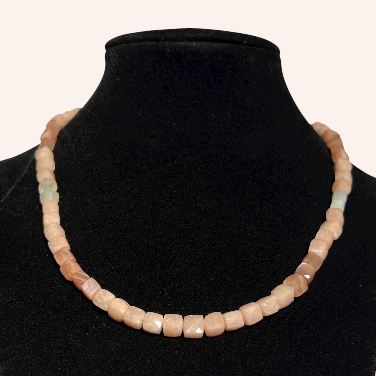 Peach moonstone—known as the “Stone of New Beginnings”—is believed to soothe emotions, awaken intuition, and inspire a sense of gentle self-love. Finished simply to let the gemstones shine, this versatile piece transitions effortlessly from everyday wear to special occasions, offering both beauty and meaning in one elegant strand.