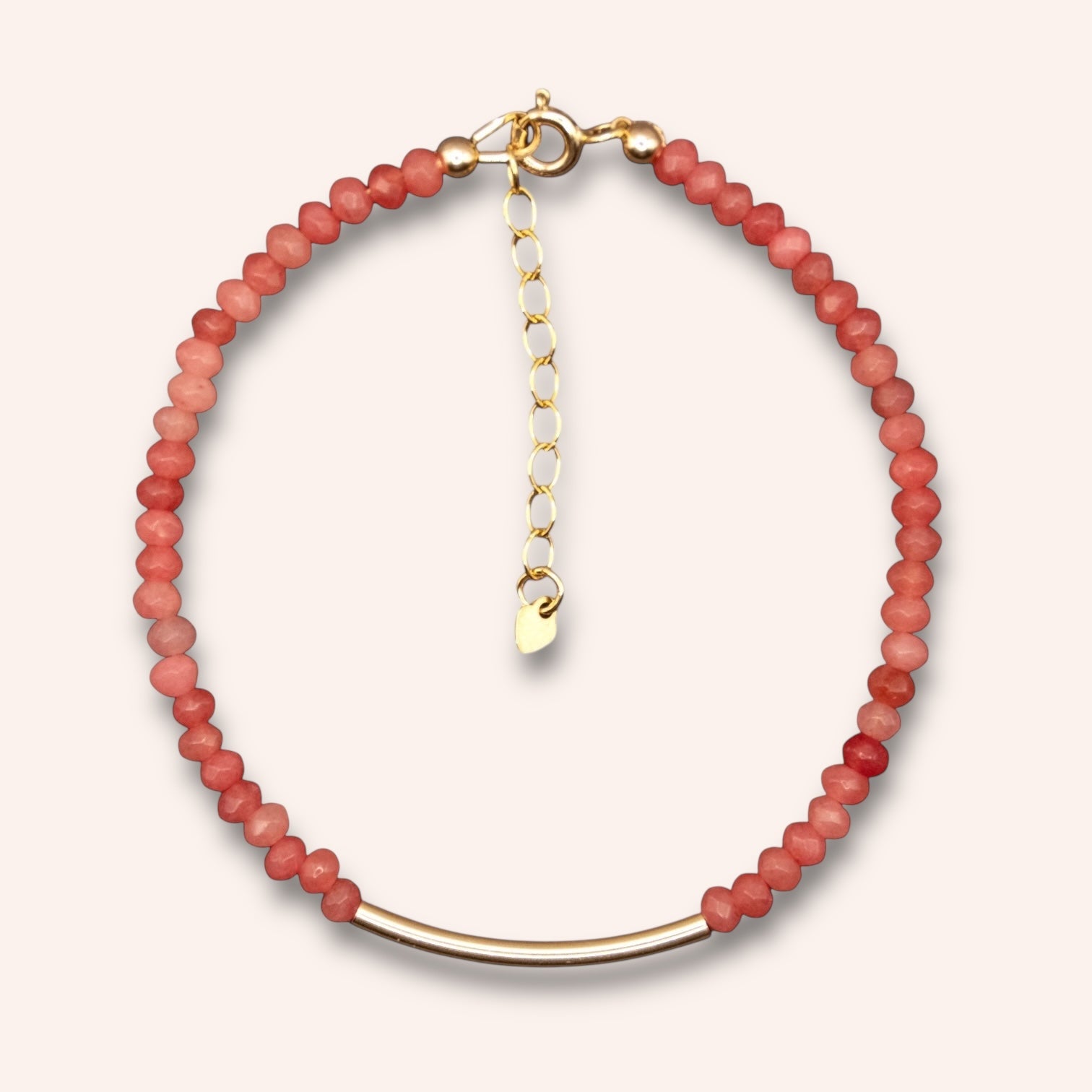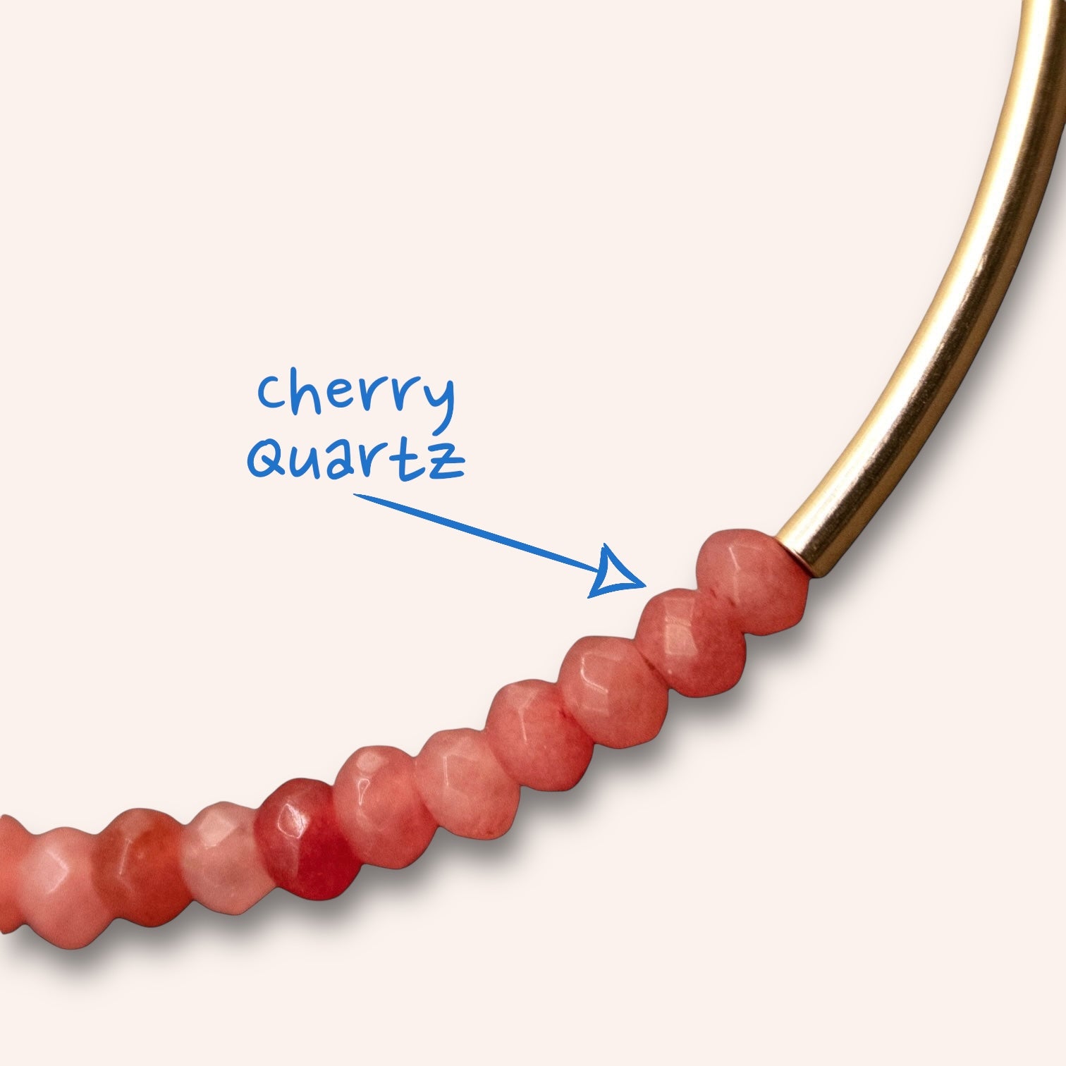 Bright and uplifting, the Radiant Love Bracelet features vibrant Cherry Quartz paired with luminous 14k gold filled accents, creating a piece full of warmth and positive energy.