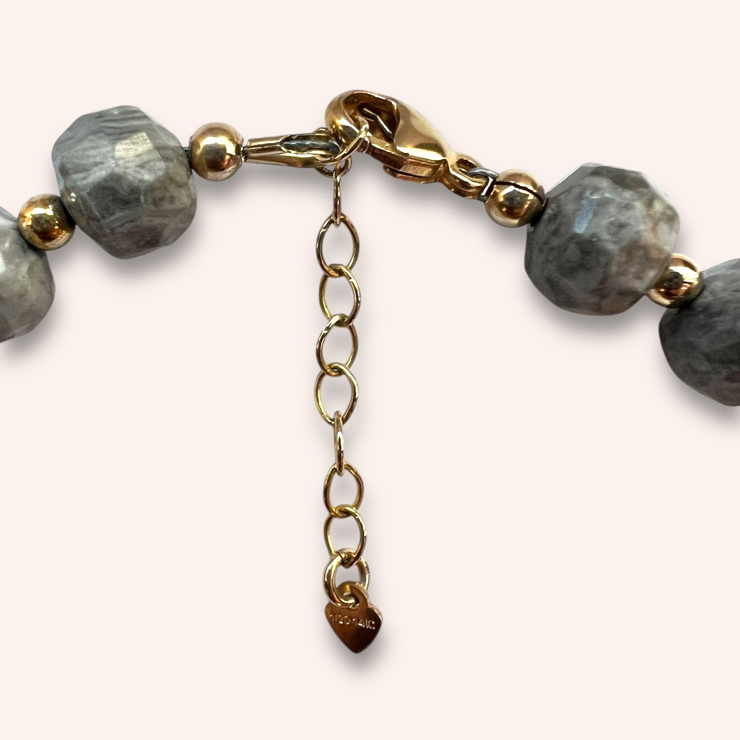 Warm 14k gold-filled accents bring contrast and elegance, giving the bracelet a refined yet earthy feel. Designed at 18.5 cm with a 3 cm gold-filled extension chain, this piece offers an adjustable and comfortable fit perfect for everyday wear or stacking with other neutral-toned favorites.