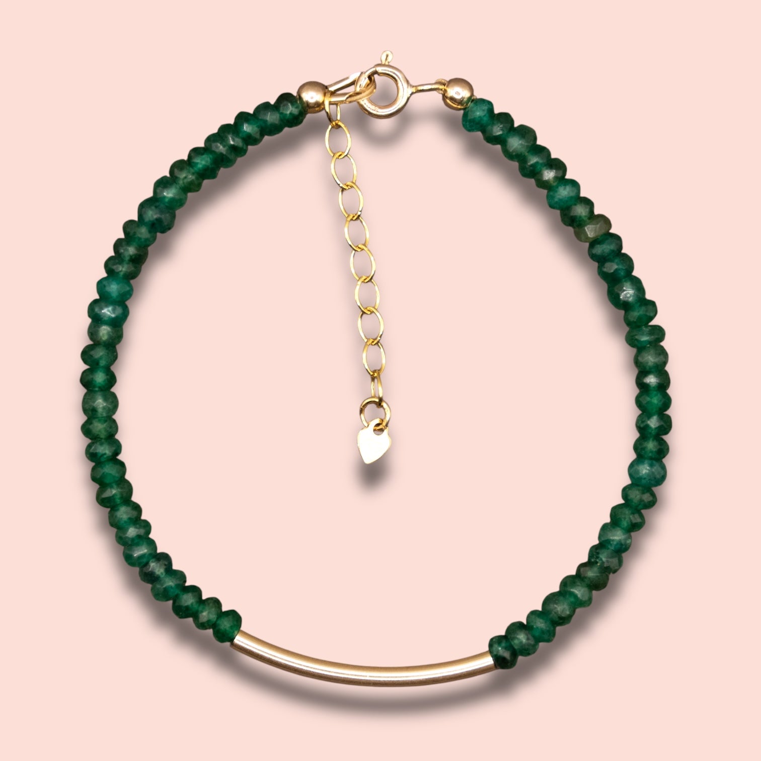 The Verdant Strength Bracelet combines the deep, lush tones of Green Onyx with radiant 14k gold filled accents, creating a bold yet elegant piece full of grounding energy.